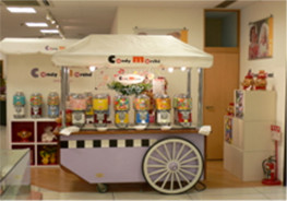 ※ カートの上にはアイキャッチにもなる、カラフルなラムネ、ガム、チョコレート、
